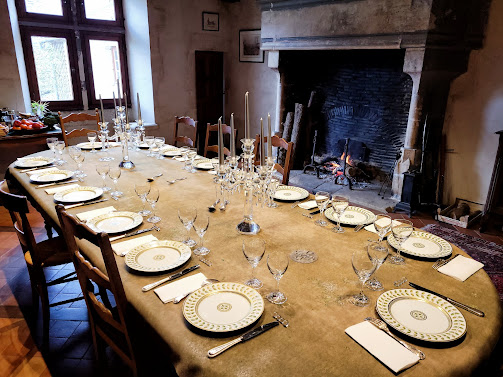 La nappe avec le couvert dressé; le rendu est plutôt original.