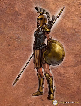 Des femmes guerrières équipées lourdement, à la mode hoplitique.